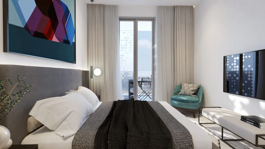 The building consists of three floors and twelve one-bedroom apartments, with allocated private parking spaces. The apartments have one bathroom, large covered verandas with aluminum sunshades, Italian-style kitchen, and provisions for electric cooling and heating systems.