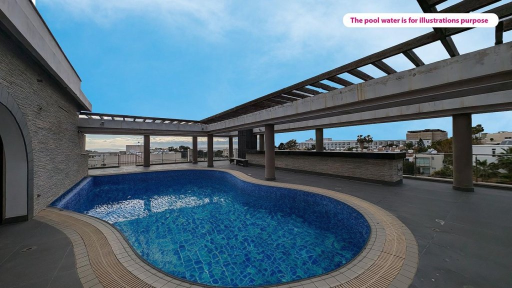The ground floor consists of a dining area with an auxiliary area.The mezzanine comprises of an auxiliary area which has been converted into an apartment. Furthermore the first floor consists of a roof-garden and an over-flow swimming pool, bar and fencing.