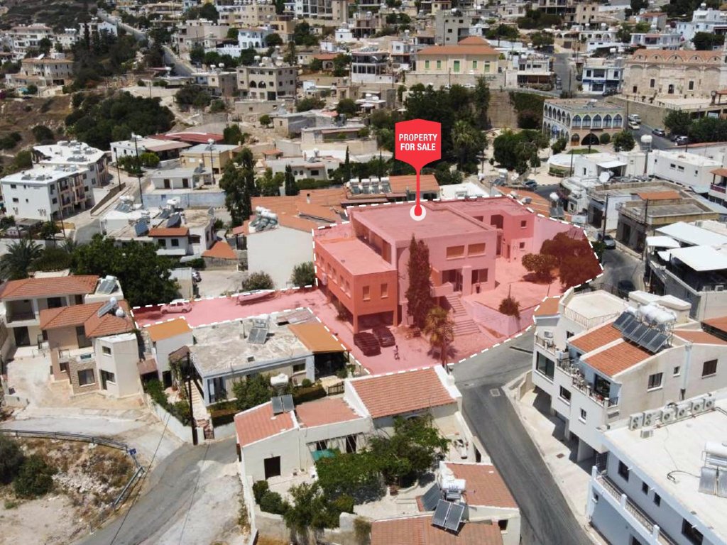 Two storey building in the heart of Pegeia Municipality in Paphos District. It is located at a distance of 75 meters (approx.) southeast of the Town Hall and 135 meters (approx.) southwest of Pegeia Elementary School. The property is situated close to plethora of amenities and services such as cafes, restaurants, banks, supermarkets etc.It needs to be noted that Pegeia is a long-time tourist destination with great building development potential.The property abuts onto public roads on its southwestern and northeastern boundaries with a total frontage of 40 meters (approx.). The building consists of a ground floor, a first floor and a basement. Externally there is a traditional stone-build building.The area of the building is 705 sq.m (approx.), the basement 160 sq.m (approx.), the stone-build building 25 sq.m (approx.), the uncovered verandas 80 sq.m (approx.) and the plot 1290 sq.m.The building was constructed around 1990 and had secured the necessary Building Permit as a restaurant.It is worthmentioningthat for the property there is a concept design for the conversion of the existing building into a development of a modern residential complex of eight (8) luxury apartments. Specifically, it will consist of (7) two-bedroom spacious flats and (1) one bedroom flat.