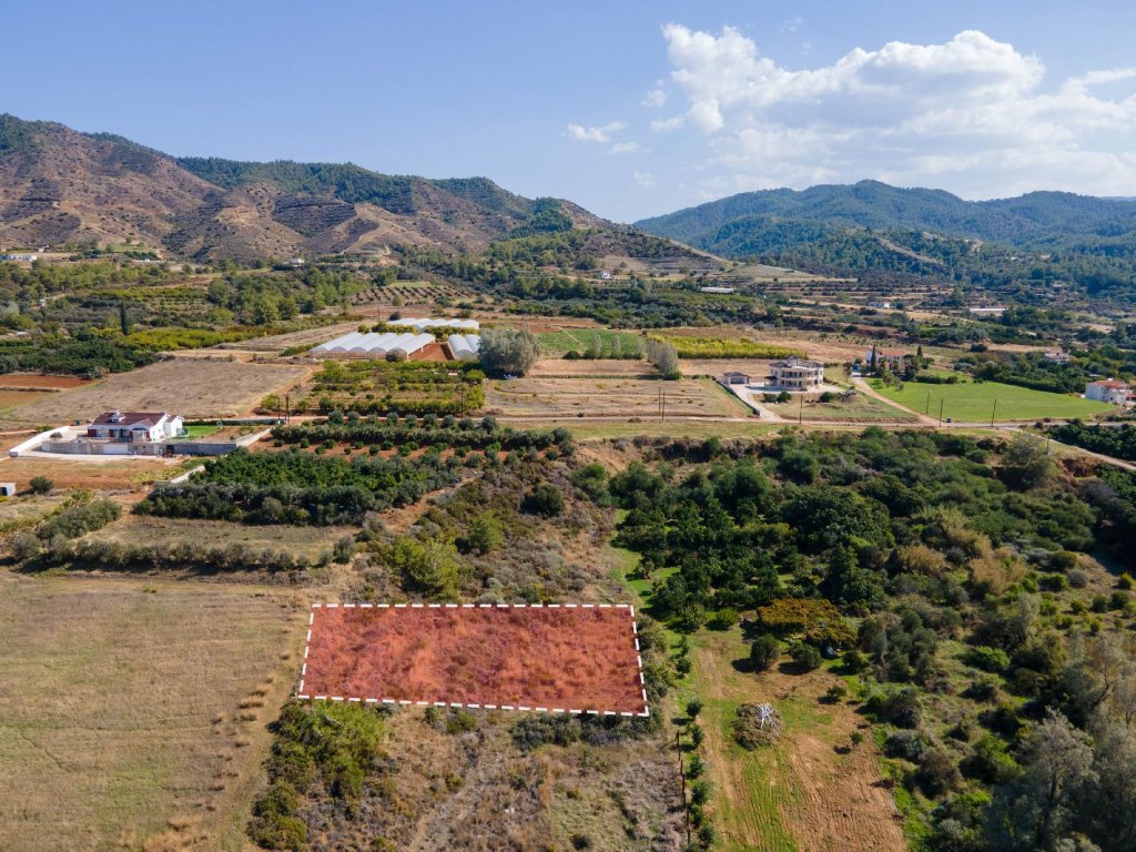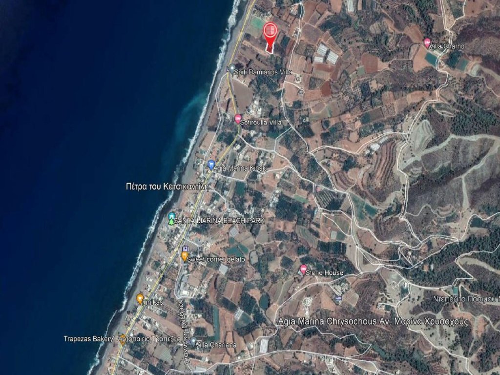 Residential field in Agia Marina Chrysochous, in Paphos District. It is located approximately 200 meters east of the coastline and approximately 150 meters east of the main road Polis Chrysochous - Pomos.The immediate area of the property mainly consists of scattered residential developments and several empty fields and plots.It has a rectangular shape and a slopping land surface. The field is landlocked but is just 100 meters west from the nearest registered road.It has a building density of 60% which guarantees a good building and living environment.The property hasview to the sea.