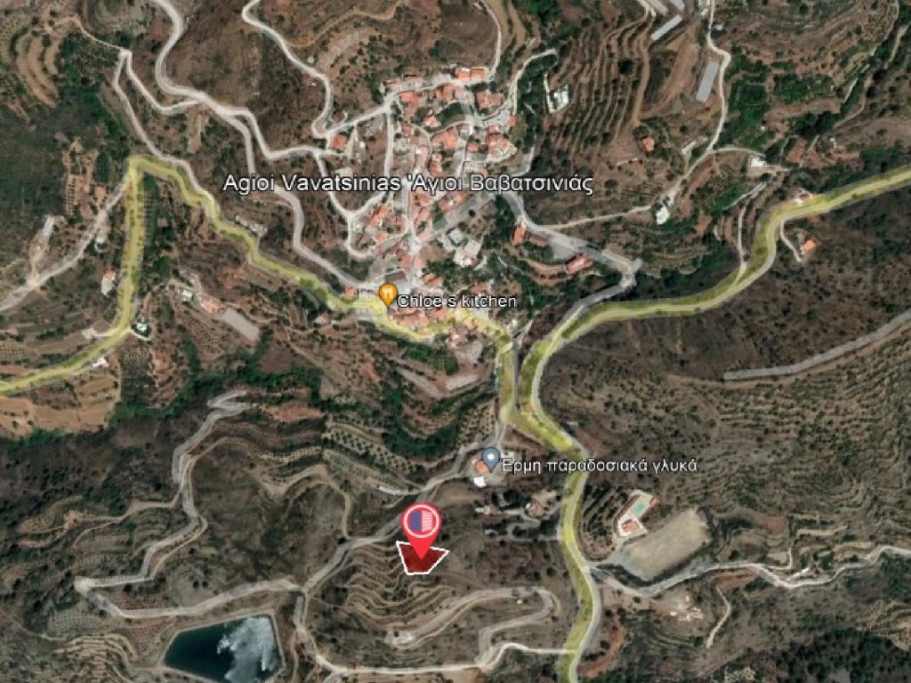 Residential field in a quiet area in Agioi Vavatsinia village, in the District of Larnaca. It is situated at a distance of approximately 400 meters south from the village centre and approximately 155 meters west of the main road connecting the villages of Agioi Vavatsinia and Ora.It has a trapezium shape, uneven and slopping surface. The parcel is considered landlocked, however it is situated at short distance 20 meters southeast from the closest public registered pathway (under registration as public road).Moreover the parcel abuts on its south and east boundary with land owned by the Cyprus Government. The locality of the property is characterized by a beautiful natural environment.