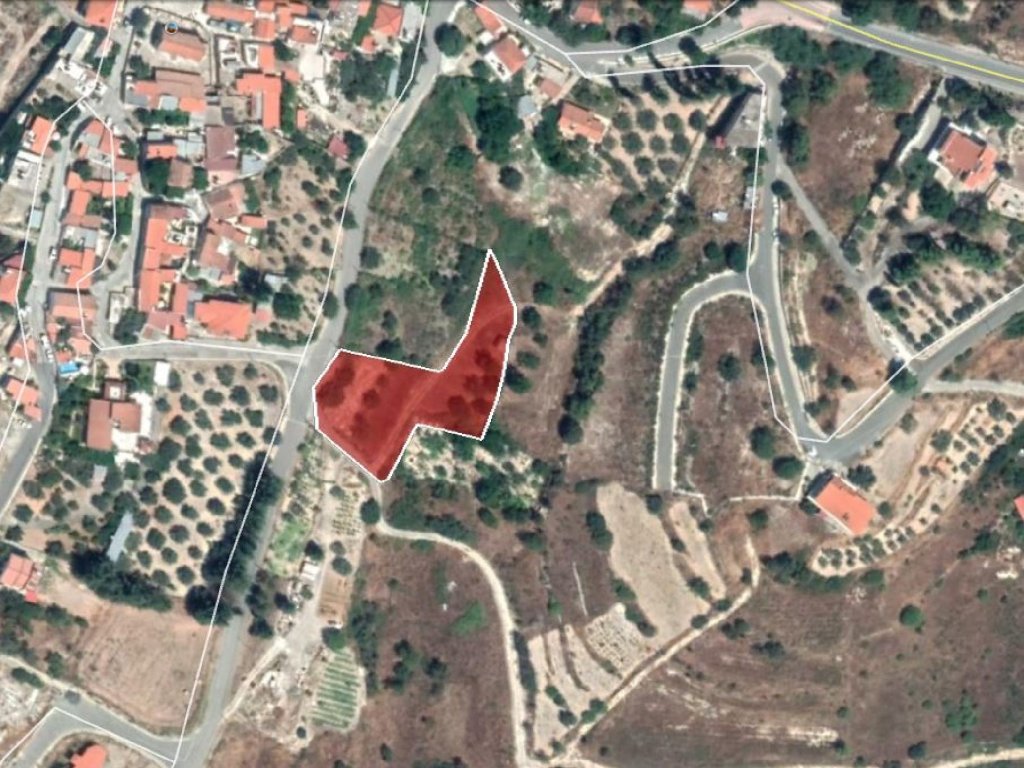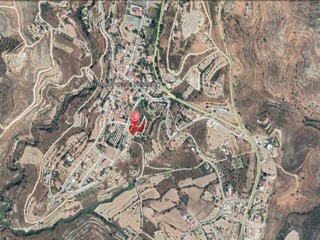 Residential field in Agios Amvrosios village, in Limassol District.The property is located about 130 meters southeast of the center of the community and about 150 meters southwest of the main road connecting the villages of Agios Amvrosios and Souni/Zanakia.It has an irregular shape and a sloping surface from west to east.It abuts onto a public registered road along its northwestern and southwestern boundary with frontage of approximately 59 meters.The locality of the property is characterized by a beautiful natural environment.