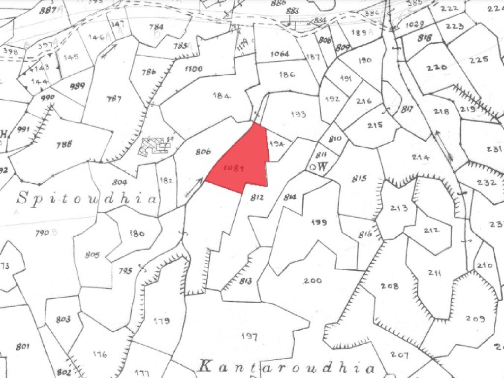The property under study lies within the administrative boundaries of Agrokipia village.It is situated in the location of "Kambos" at a distance of approximately 800m southwest from the core of the village.It has a rather irregular shape, an even and slightly sloping surface and no access.