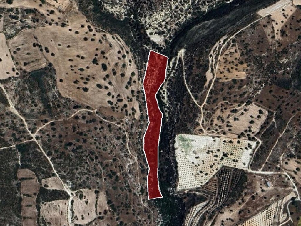 The property for sale is a field which lies within the administrative boundaries of Avdimou village, in Limassol District. It is situated 1,4km north of the village and approximate 550m west of the connection road Avdimou - Prastio.It has irregular shape, a sloping land surface and it is landlocked. However, the property is situated 550m away of the nearest registered road.The field falls within the Protection Zone (Z3) with maximin building density of 1%.