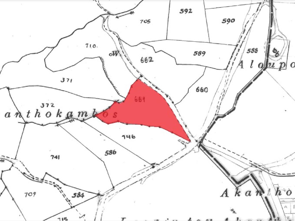 Residential field in Choletria community, in Paphos District. It is situated ata distance of 170 meters (approx.) north of Saint Panteleimonas church. The immediate area of the property consists of houses and empty parcels of land.It has a triangular shape, a level surface andabuts onto a public registered road (dirt road) along its northeastern boundary with a frontage of 160 meters (approx.).The property has very good access to the neighboring villages, the motorway, the city of Paphos and to all necessary services and amenities. It is suitable for the division of plots or for a unified residential development.