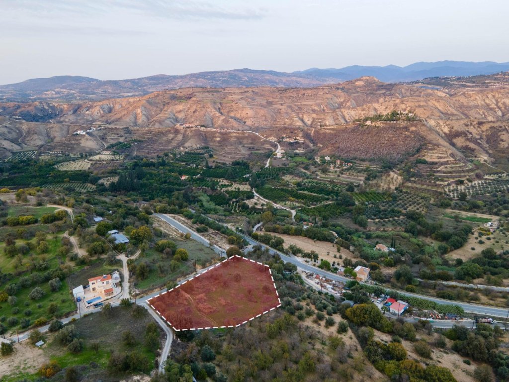 Residential field in aquiet and attractive locationin Giolou community in Paphos District.It is located at a distance of 450 meters (approx.) northeast of theGiolou village center and approximately 20 meters west of the Giolou – Polis Chryso connected road.It has an irregular shape, an uneven surface and it abuts onto a public registered road along its northern and western boundary with frontage of approximately 110 meters.It is suitable for the division of plots or for large residential development.