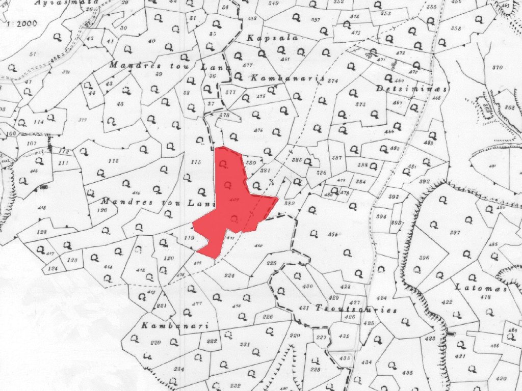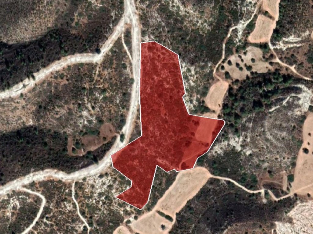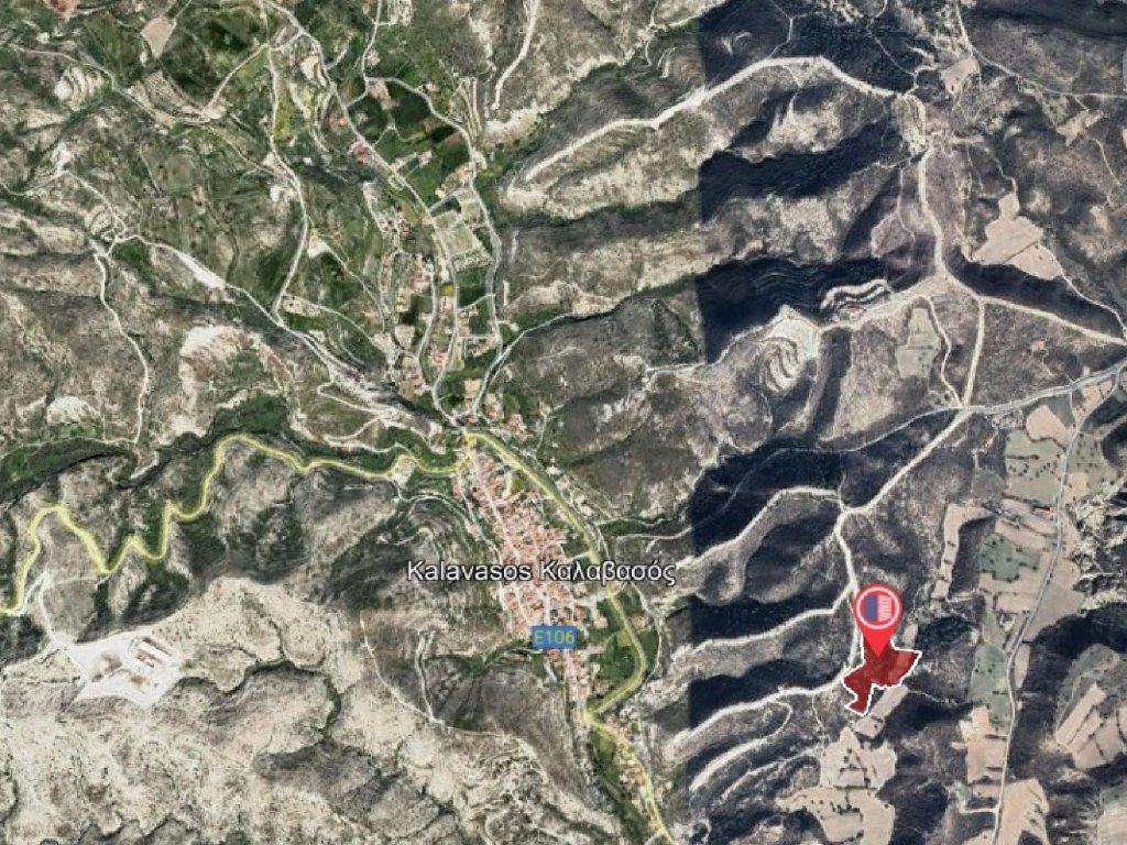 Field in protection zone in Kalavasos village, in Larnaka District. The property is located about 850 meters (approx.) southeast from the village centre and about 1.9 kilometers north of the highway Nicosia - Limassol.It has an irregular shape and a sloping surface. Access to the property can be gained via a non-registered dirt road. The field onto a government land.The locality of the property is characterized by a beautiful natural environment.