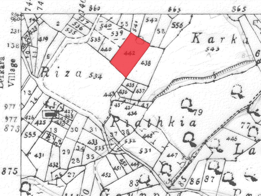 Residential field in a quiet area in Kato Lefkara village, in Larnaca District.It is situated at a distance of approximately 340 meters southeast of the village center and approximately 640 meters from the main road connecting the village with the motorway Limassol-Nicosia.It has a regular shape and a level surface.The parcel is considered landlocked, however it is situated at a distance of 53 meters southeast from the closest public registered road.The locality of the property is characterized by a beautiful natural environment.