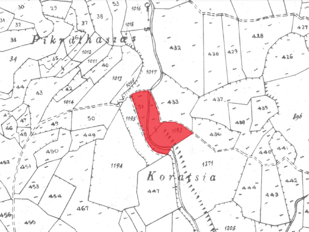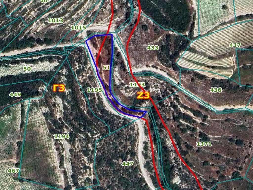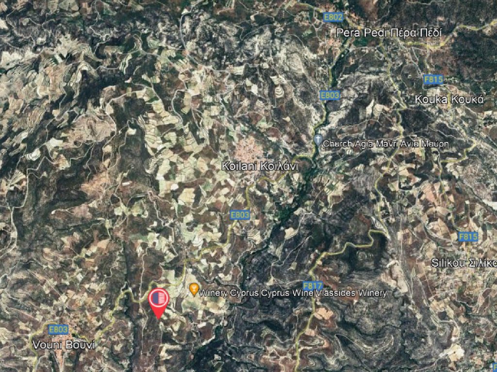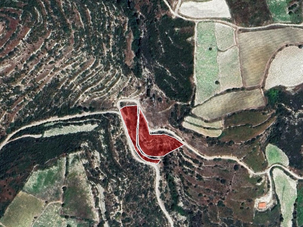 Two adjoining fields in Koilani community in Limassol District. They are located at a distance approximately 1.2 kilometers southwest from the community's center and approximately 2 kilometers north west of the main road connecting the villages of Koilani and Vouni.They have an an irregular shape and an uneven surface. As a unified property abut onto a pubic registered road along its northeastern boundary with a frontage of approximately 167 metersThe total area of the properties is 6.356sqm.It falls within the Agricultural Zone Γ3, having building density coefficient 10% and within the Protected Zone Ζ3, having building density coefficient 1%.