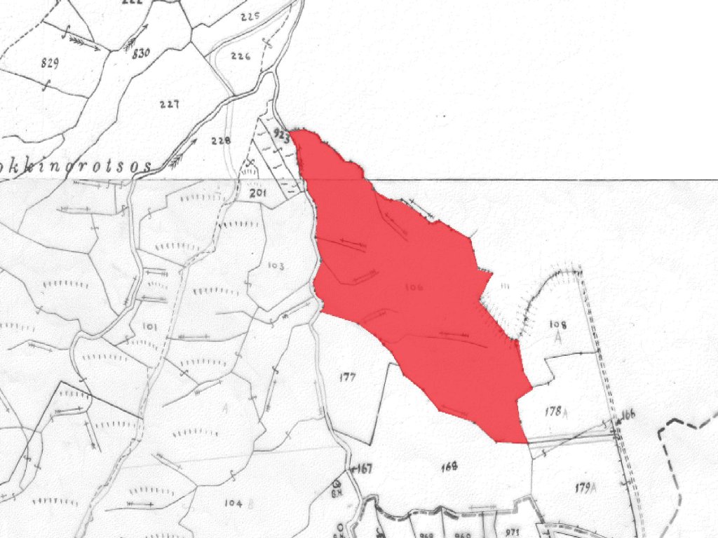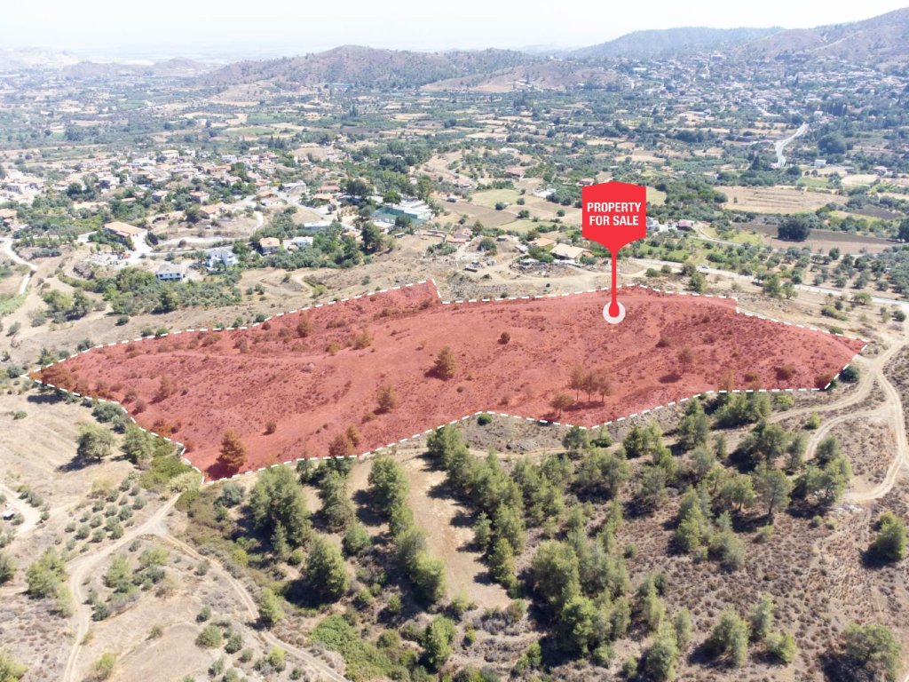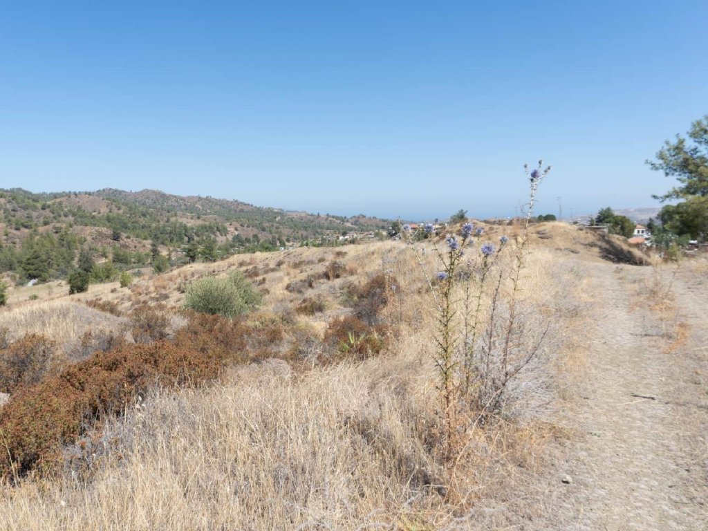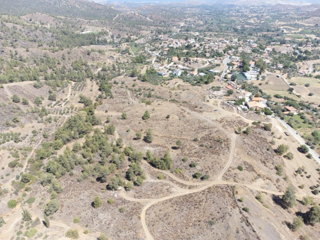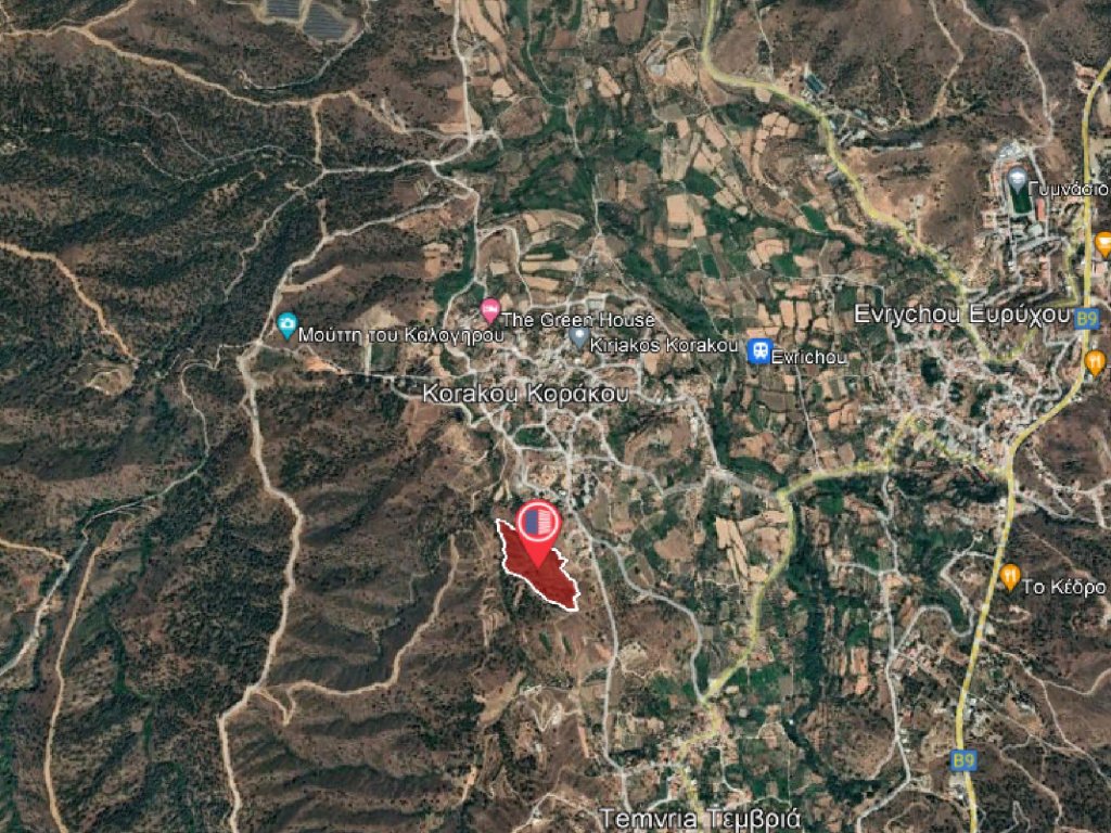 Residential field in Korakou Community, in Nicosia District. It is located 500 meters south of the center of Korakou village and 700 meters north of Temvria village. It has uneven surface, irregular shape and is 110 meters away from a registered road. It falls within two planning zones, Γ3 (agricultural area that allows for 10% building density) and H4 (residential area that allows for 40% building density). It is noted that together with other two adjoining fields, the property was granted with a planning permission for the division of a total of 32 residential plots.