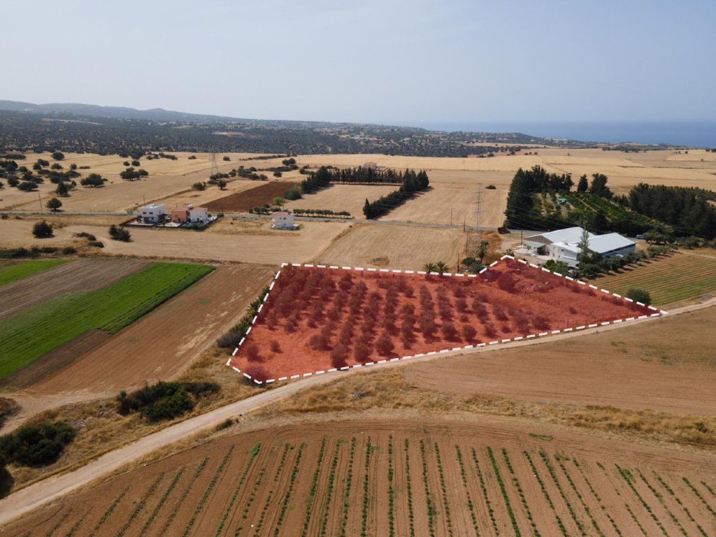 Residential field in Kouklia community, in Paphos District. It is situated at a distance of approximately 1,1 km northeast from Kouklia Police Station and approximately 75 m north from the main road Kouklia - Archimandrita.The field has an irregular shape, a level surface and it is accessible through the right of way.It has to be noted that there is a high voltage pylon on its southernboundary and high voltage cables passing through the field.The field has acquired a right of way towards the public road and it offers a nice view to the sea. It is considered as a good choice for land developers.