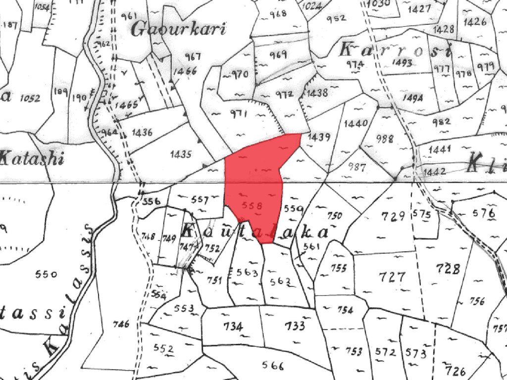 Agricultural field in a quiet area of Letymvou community in Paphos District. It is located about 1.4 kilometers southeast of the center of the community.It has irregular shape and an uneven surface.The property is inaccessible via registered road but is located at a distance of 15 meters (approx.) east the nearest public road.The locality of the property is characterized by a beautiful natural environment.