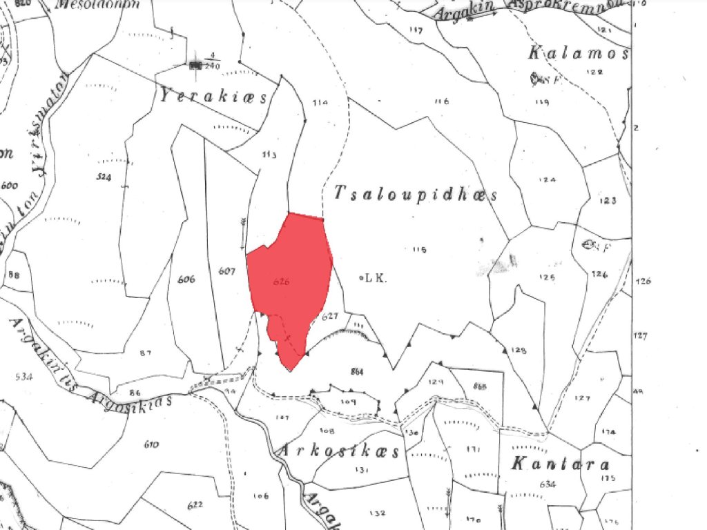 Fieldwithin the Protection Zone inNata community, in Paphos District.It is situated at a distance of approximately 600 m northeast from the center of the community.It has an irregular shape, a sloping surface and abuts onto a registered pathway along its southern boundary, with a frontage of approximately 25 m.