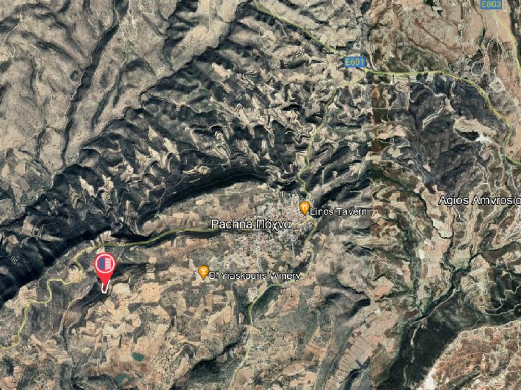 Agricultural field in Pachna community,in Limassol District. It is situatedat a distance of approximately 2,2km west of the community's centre.It has a regular shape with a sloping land surface and it is landlocked.