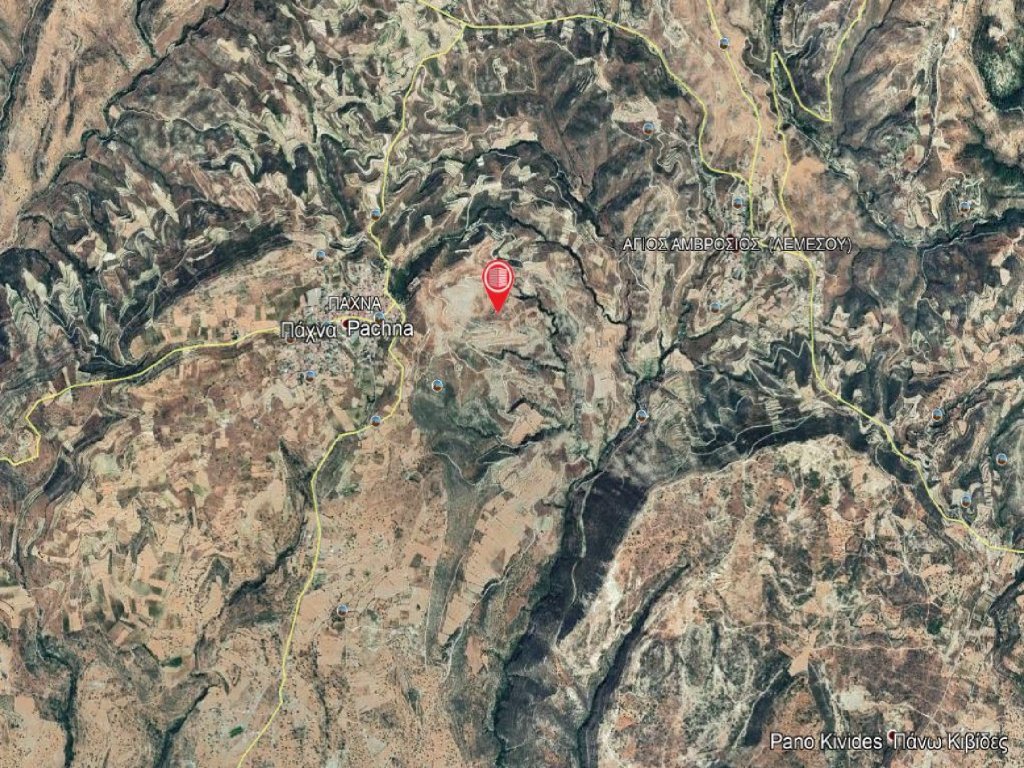 Agriculturalfield in Pachna village, in Limassol District. The property is located about 1.2 kilometers east from the center of the community and about 710 meters east of the main road connecting the villages of Pachna and Prastio.It has an irregular shape and a slightly sloping surface. Access to the property can be gained via a non-registered dirt road.