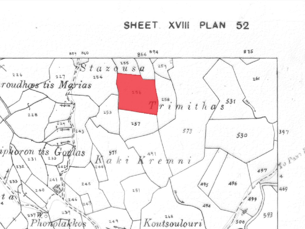Agricultural field in Pano Pyrgos community, in Nicosia district.It is situated at a distance of approximately 1 km north from the traditional centre of the community. The property has rectangular shape, sloping surface and is landlocked.It is noted that the property is located at a distance of approximately 125 m east from a registered road.
