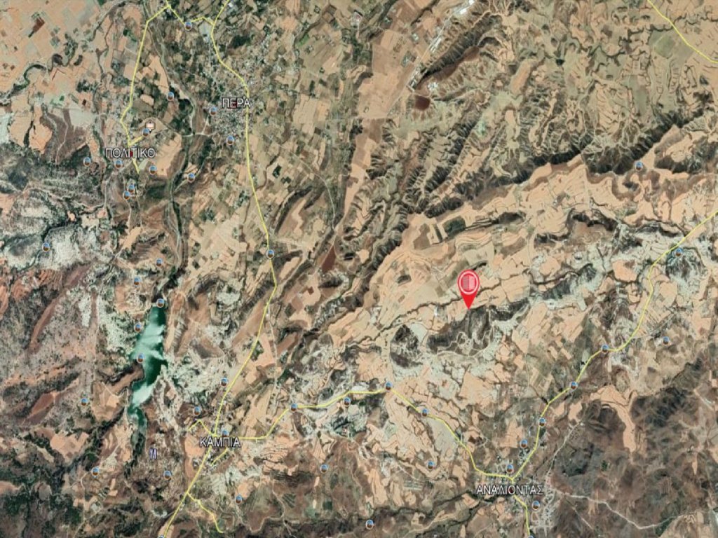 Agricultural field in Pera community in Nicosia District. It is situated at a distance approximately 3 kilometeres southeast of the community center and approximately 1.5 kilometres northwest of Analiontas community center.It has a rectangular shape and a sloping surface. The parcel is considered landlocked however, it is situated at a distance of approximately 500 meters east from the nearest registered road.