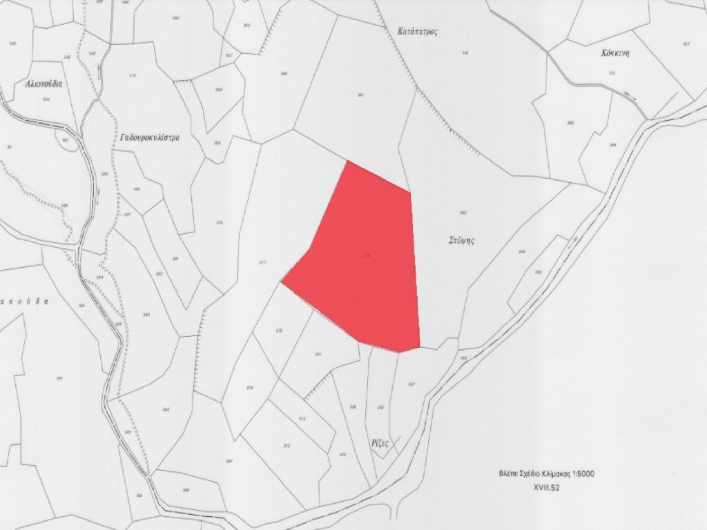 Agricultural field in Pigenia village, in Nicosia District. It is located at a distance of 980 meters southeast of the center of the village.It has an irregular shape with an sloping surface.The property is landlocked.