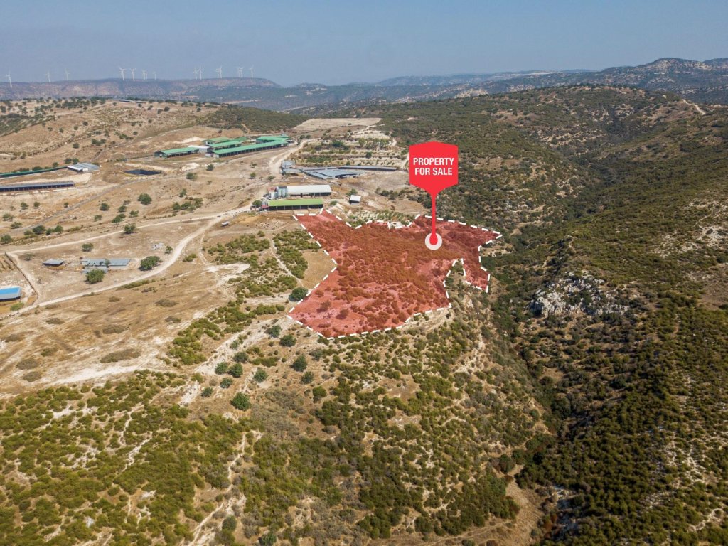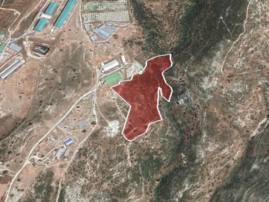 Live stock field in Pissouri village in Limassol District. It is situatedat a distance of approximately 2,7 km north of the village center. It has airregular shape and ainclined surface. The parcel is considered landlocked, however it is situated only a short distance from the closest public registered road.It falls within the livestock Zone Δ1 where the construction of premises for mass breeding of animals and birds (except pigs) is allowed with a maximum building densityof 50%.