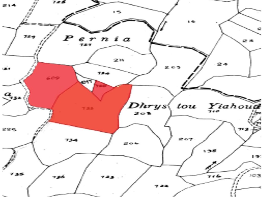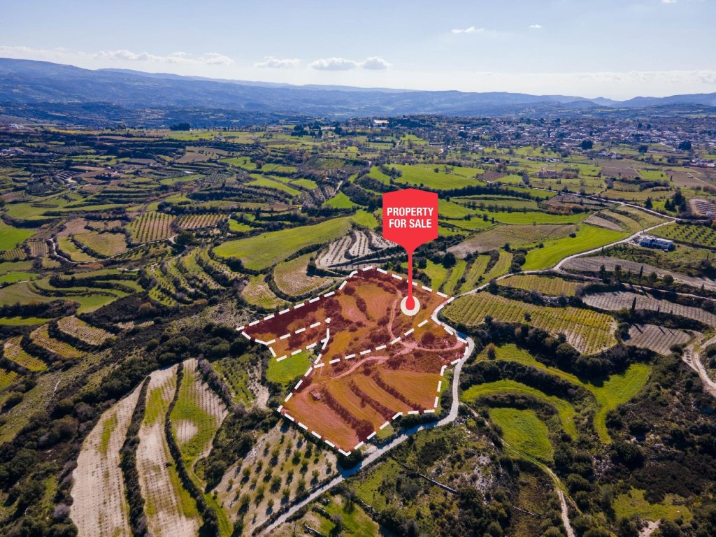 Three adjacent agricultural fields in Polemi village, in Paphos District. They are located at a distance of 1,5 km north of the center of the village.As a unified property they have an irregular shape with a sloping surface and they abut onto public road (dirt road) on part of their southwestern boundary.The fields are being sold as a single property.
