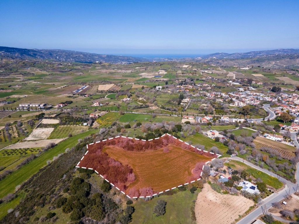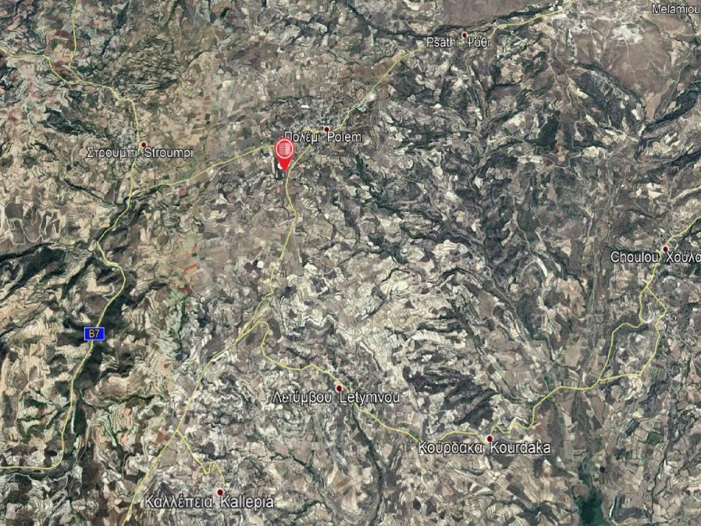Residential field in a quiet area in Polemi village of Paphos district. It is situated at a distance of, approximately 550 meters southwest of the village’s center and approximately 2km east of the main road Paphos - Polis Chrysochou.It has an irregular shape, a level land topography and abuts ontoregistered road on its north-eastern boundary.It is ideal for the development of primary or holiday homes, as it is located in a beautiful and quiet area which is very close to all necessary amenities.The village of Polemi is only 15 minutes away from Paphos and the motorway.