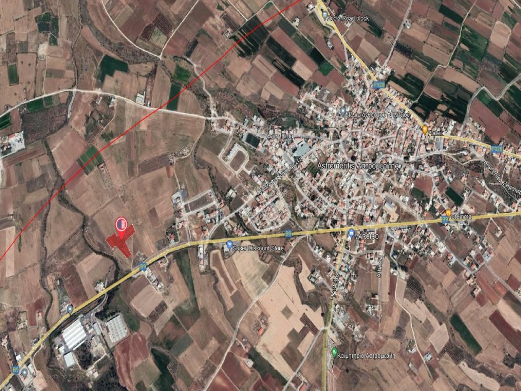 Available for sale is the 2/3 undivided share of a residential field, which corresponds to an area of approximately 6,689 sqm, in Astromeritis community of Nicosia district. It is situated approximately 1.3 km southwest of the community center and approximately 990 m northwest of Potami - Astromeriti road connection.It has a regular shape with an inclined surface and it is accessible though a non-registered road.The property falls within the Residential Zone H2, having a building density of 90%.The property is subject to compulsory acquisition.