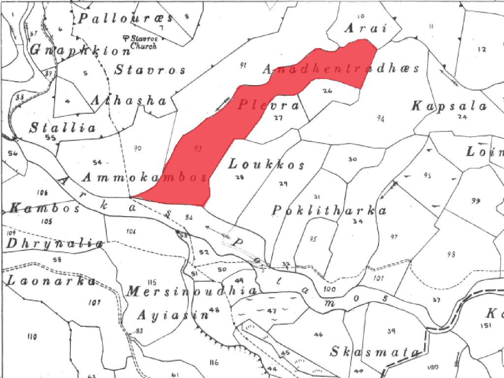 Field in Kannaviou community,in Paphos District. It is located at a distance of approximately710 meters northeast from the community's center and 1 km south from Kannaviou dam.It has an irregular shape and a sloping surfacetowards the northeast. The property is landlocked and it can be accessed through a non - registered dirt road.The property for sale concerns the 8089/28429 share which relates tothe southwestern part of the field.