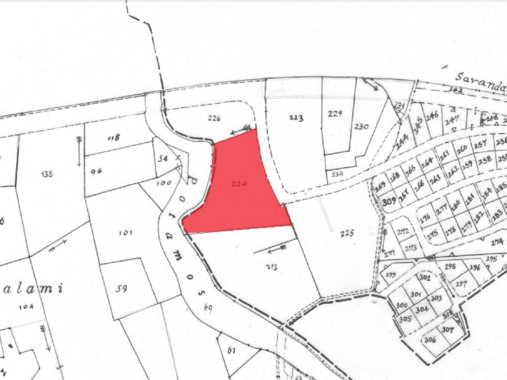 Available for sale is the south (5/12) share of a touristic field which is approximately 6,079sqm, in a quiet area in Kiti community, in Larnaca District. It is situated at a distance of approximately 1.6k west from the Pevolia village center and approximately 500m north from the sea.It has an irregular shape, a level surface and abuts onto a registered road along its eastern boundary with a frontage of approximately 130 m.An advantage of the property is that lies within the town planning zone T2a that allows the touristic developmentsThere is a distribution agreement and the share corresponds to the southern part of the property as shown in red and with the letter (A) in the drawing.