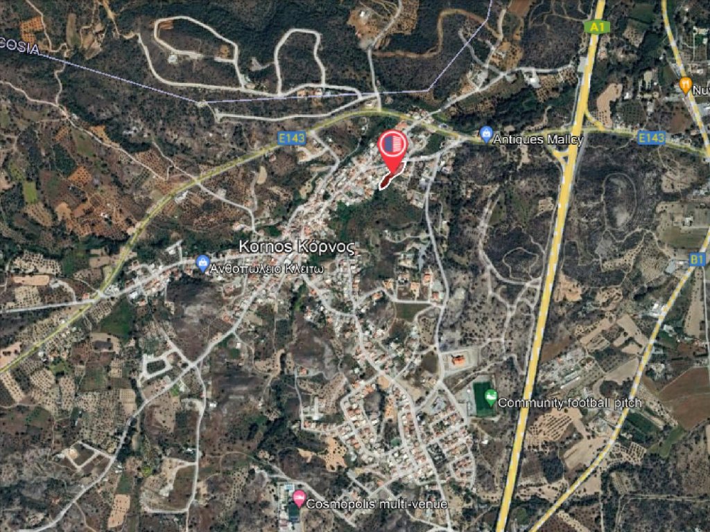 The property for sale are the 3/5 shares of a residential field which correspond to an area of 2285 sqm.The property is located in Kornos community in Larnaca District, at a distance of 420 meters northeast of the community center and 620 meters west of the motorway.It is situated close to amenities and services such supermarkets, schools, restaurants etc. In addition, it has excellent accessibility to the neighboring villages and the motorway.The field has an irregular shape and a smooth surface.It abuts onto public road along its northern boundary with a frontage for 39 meters (approx.).It is noted that the 3/5 shares correspond to the vacant part of the field (southern part).