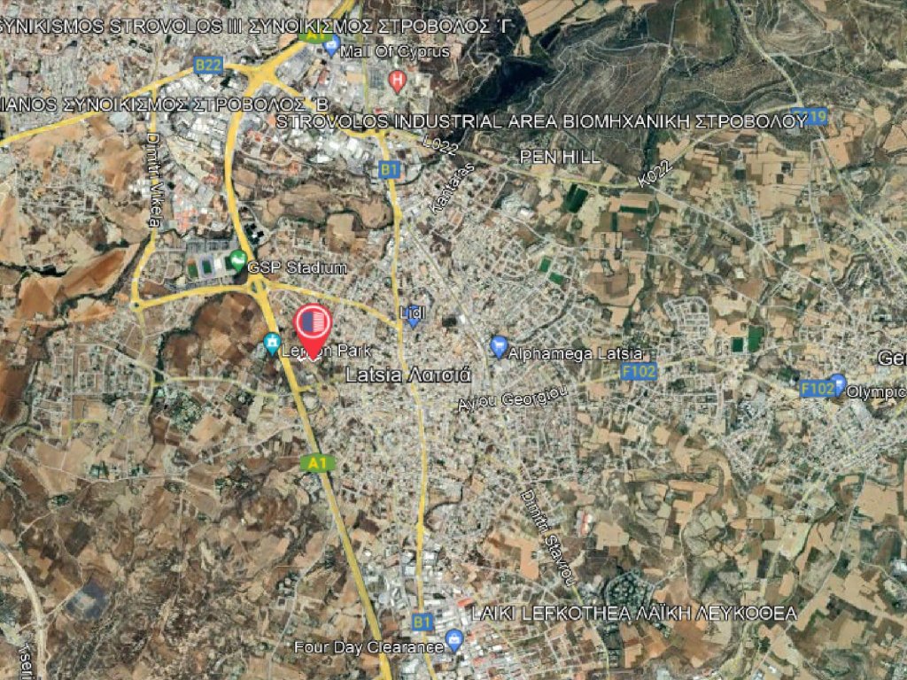 Available for sale is the 7/8 share of a residential field which is approximate 5,723 sqm. in Latsia municipality in Nicosia District. It is situated at a distance of approximately 200 meters north of Archiepiskopou Kyprianou Avenue and approximately 80 meters east of the Nicosia –Limassol motorway.The property has an irregular shape and a level surface. The parcel is considered landlocked, however it is situated only a short distance from the closest public registered road.It falls within the Residential Zone Kα6 (46%), having building density coefficient 90% and within the Special Usage Zone ΕΧ2 (54%) having building density coefficient 80%.