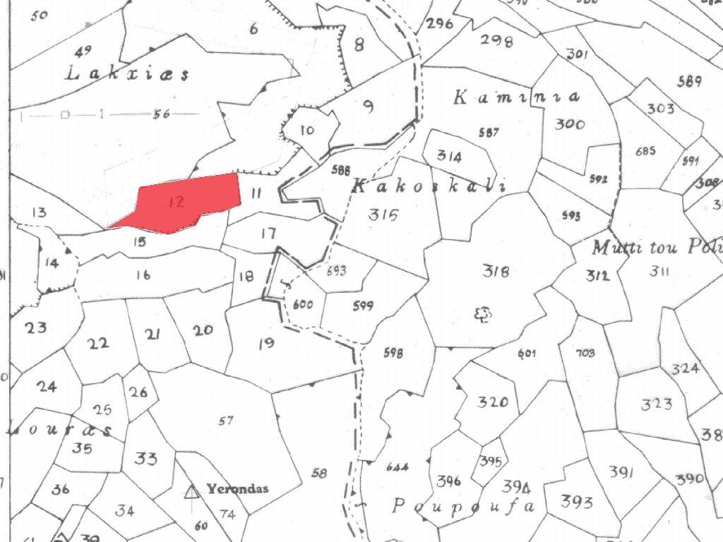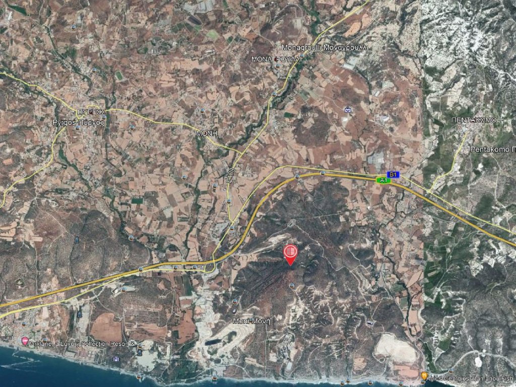 Available for sale is the 1/2 undivided share of a field, which corresponds to an area of approximately 2,676sq.m, in Moni Community, in Limassol District. It is situated 2.1 kilometers (approx.) southeast of the community center and 1.8 kilometers (approx.) north of the coastline.The property has irregular shape and a slightly sloping surface. The property is considered landlocked, however it is situated only a short distance from the closest public registered road.The locality of the property is characterized by a beautiful natural environment.It fall within the Protected Zone Z1, having building density coefficient 6%
