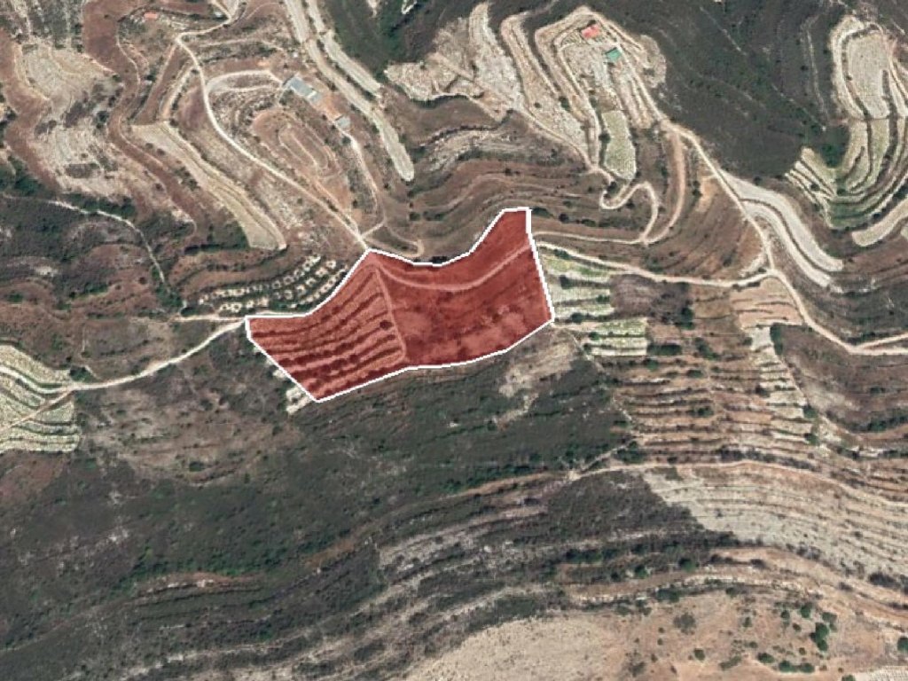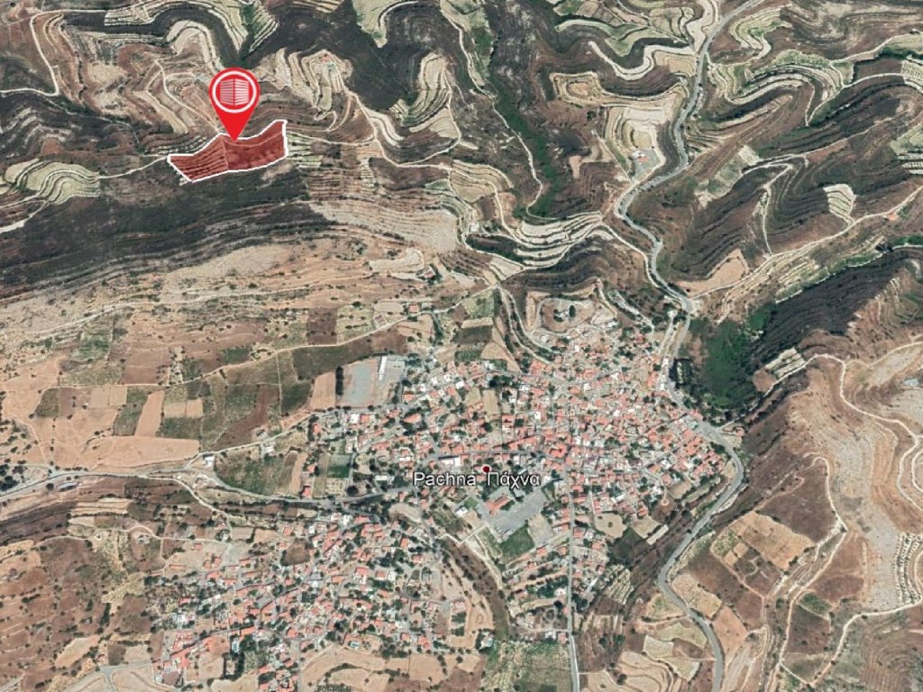 Available for sale is the 1/2 share of an agricultural field which correspond to an area of 11,037sqm (approx.) in Pachna villagein Limassol District.It is situatedat a distance of approximately850m northwest of the centre of the village.It has an irregular shape with a sloping surface and it is abuts onto a non-registereddirt road.The property is situated at a distance approximately 360m of the Residential Planning Zone.Within the field there are vineyards, and the ground is fertile and can be cultivated.