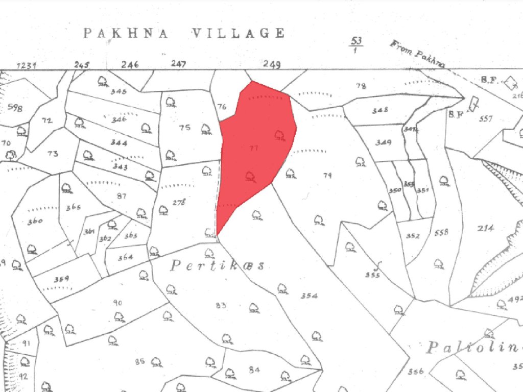 Available for sale is the 1/3 share of an agricultural field which correspond to an area of 5,463sqm (approx.) in Pachna village in Limassol District.It is situated at a distance of approximately 900m southeast of village center.The field has an irregular shape with slopping land surface.