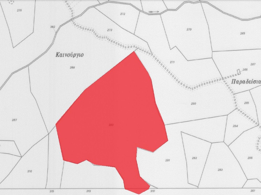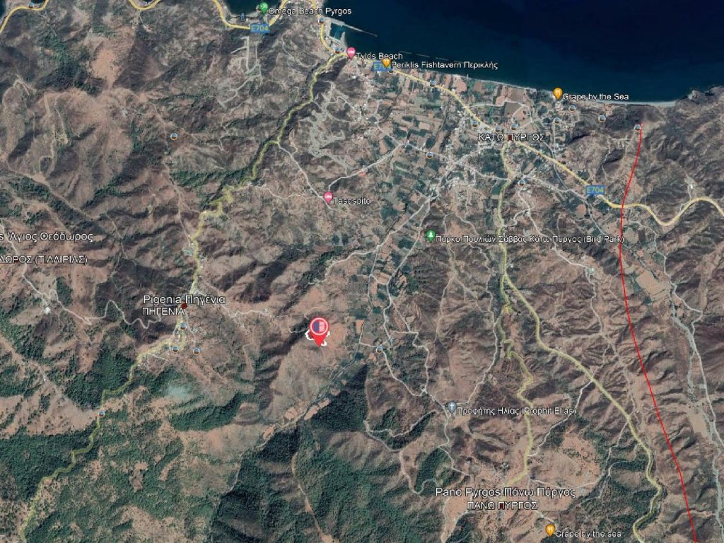 Available for sale is the 1/2 undivided share of a residential fiend, which corresponds to an area of approximately 9,531 sq.m, in Pigenia community in Nicosia District. It is situated 1.1 kilometers (approx.) northeast from the centre of the community.It has an irregular shape and a sloping surface. It is just 10 meters northeast from the nearest under registered road ,while its access is via a non-registered dirt road.It is set in a tranquil, beautiful natural environment.