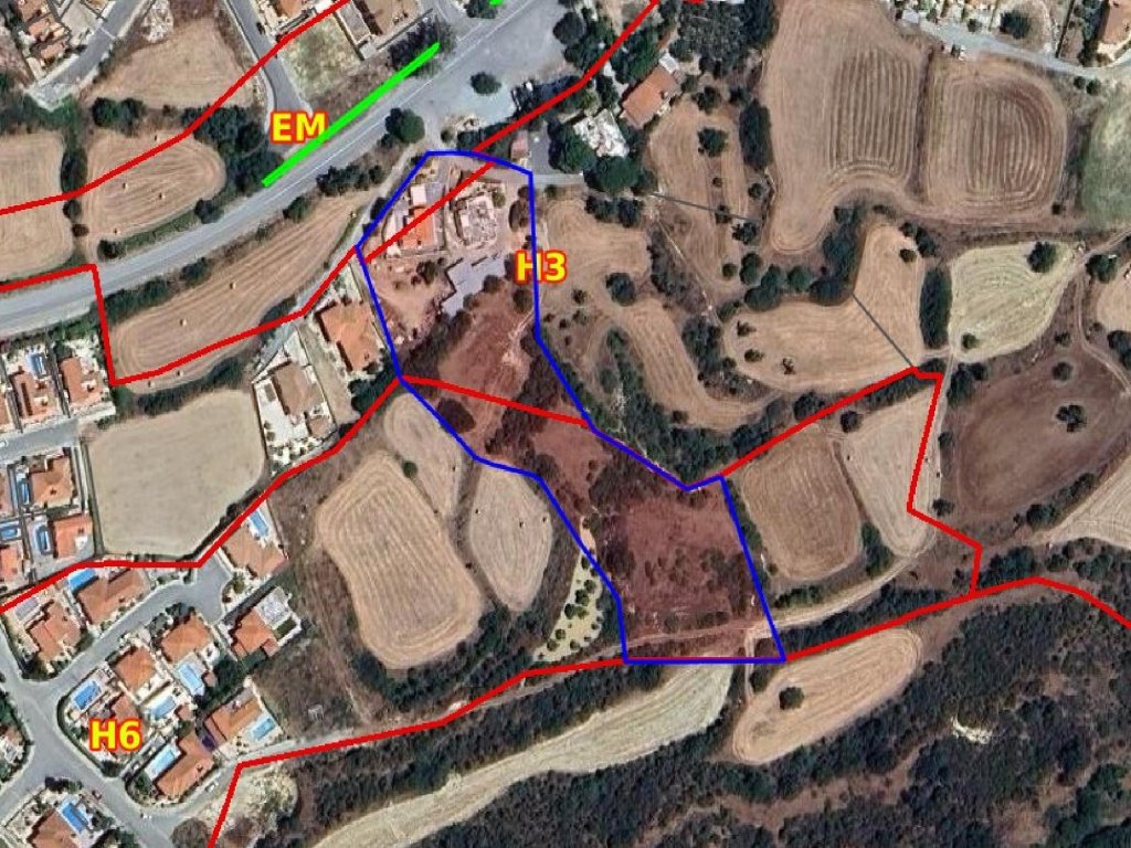 For sale are the 7/10 shares of a field which correspond to an area of 6.555 sqm (approx.). It is located in Pissouri Community in Limassol District, at a distance of 290 meters (approx.) southwest of Pissouri Police Station and 840 meters (approx.) south of the Limmasol – Paphos motorway.The property is located close to all necessary amenities and amenities. It enjoys excellent access to the community center, the beautiful beaches of the area and the motorway.The field has an irregular shape and a level surface. The 7/10 shares correspond to the southern part of the field which falls within the residential zones H3 & H6. Planning zone EM is located on the northern part of the property.It is noted that the property has a distribution agreement.