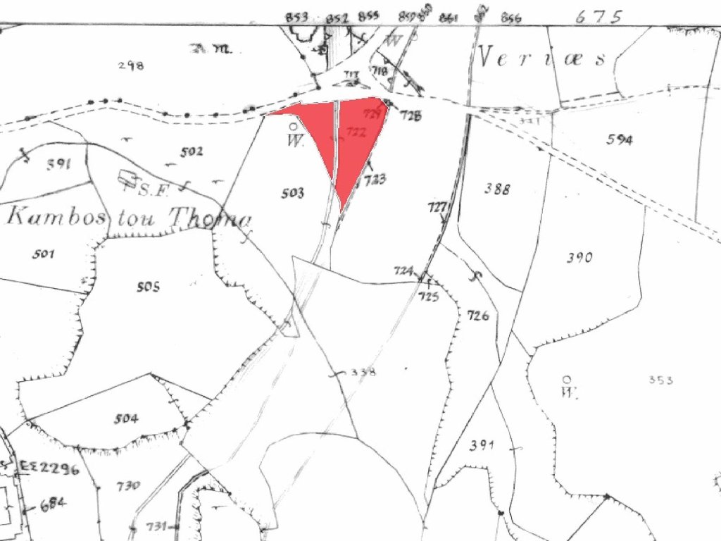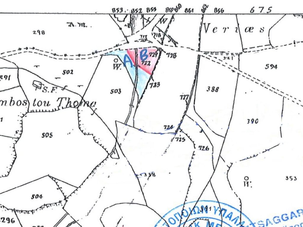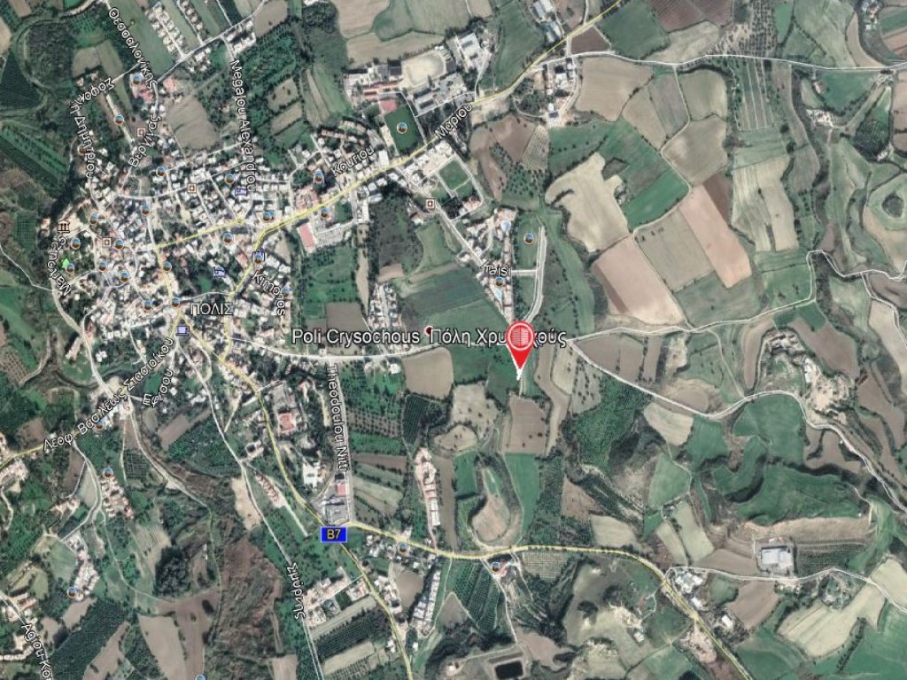 Available for sale is the 1/2 share of a residential field which is approximately 1,780sq.m, in Polis Chrysochous Municipality, in Paphos District. It is situated approximately 630 meters south from the road which links Polis Chrysohous Municipality - Argaka and approximately 1.7 kilometers from the seashore.It has a triangular shape and a level topography. It abuts onto a public registered road along its northern boundary with frontage of approximately 94 meters.The share for sale corresponds to theeasternempty part of the field (Part B).It falls within the Residential Zone Kα6 (45%), having building density coefficient 90%, within the Residential Zone Kα9 (41%), having building density coefficient 40% and within the Protected Zone Δα2 (14%) having building density coefficient 1%