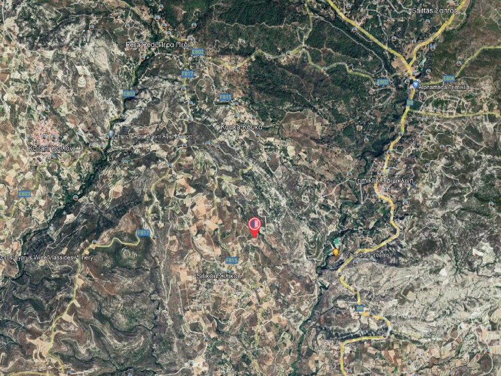 Agricultural field in a quiet and beautiful area in Silikou Community, in Limassol District. It is situated 700 meters (approx.) northeast of the center of the community and 400 meters (approx.) east of the main road Silikou and Kouka.The property has irregular shape and an uneven surface. The property is considered landlocked, however it is situated only a short distance from the closest public registered road.The locality of the property is characterized by a beautiful natural environment.