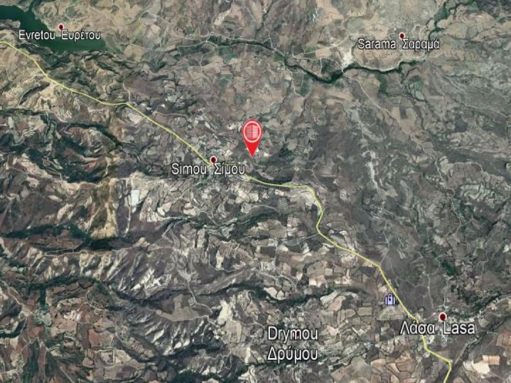 Residential field with a building density of 60%, in Simou village of Paphos district.It is located 450 meters northwest of the village’s centre and approximate 3,7km east of the main road Paphos - Polis Chrysochou.It has a regular shape, a level land topography and abuts onto a non - registered dirt road along its southern boundary.The property has a future possibility for the development of a primary or holiday home since it is located in a beautiful and quiet area which is very close to all necessary amenities.Note that the property enjoys a nice view of the surrounding area.The village of Simou is only 20 minutes away from Polis Chrysochou and approximate 30 minutes away from Paphos and the motorway.