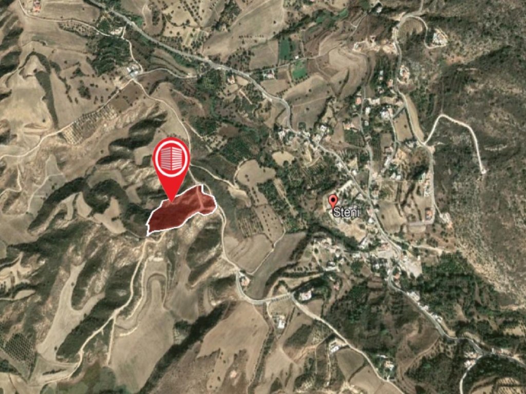 Agricultural field in Steni village, in Paphos District. It is located at a distance of 400 meters west from the village centre.It has a irregular shape with sloping surface and it is abuts onto an under-registered road along its southeast and southwest boundary with a frontage of approximately 267 meters.The property is situated at a distance approximately 140 meters of theResidential Planning Zone.