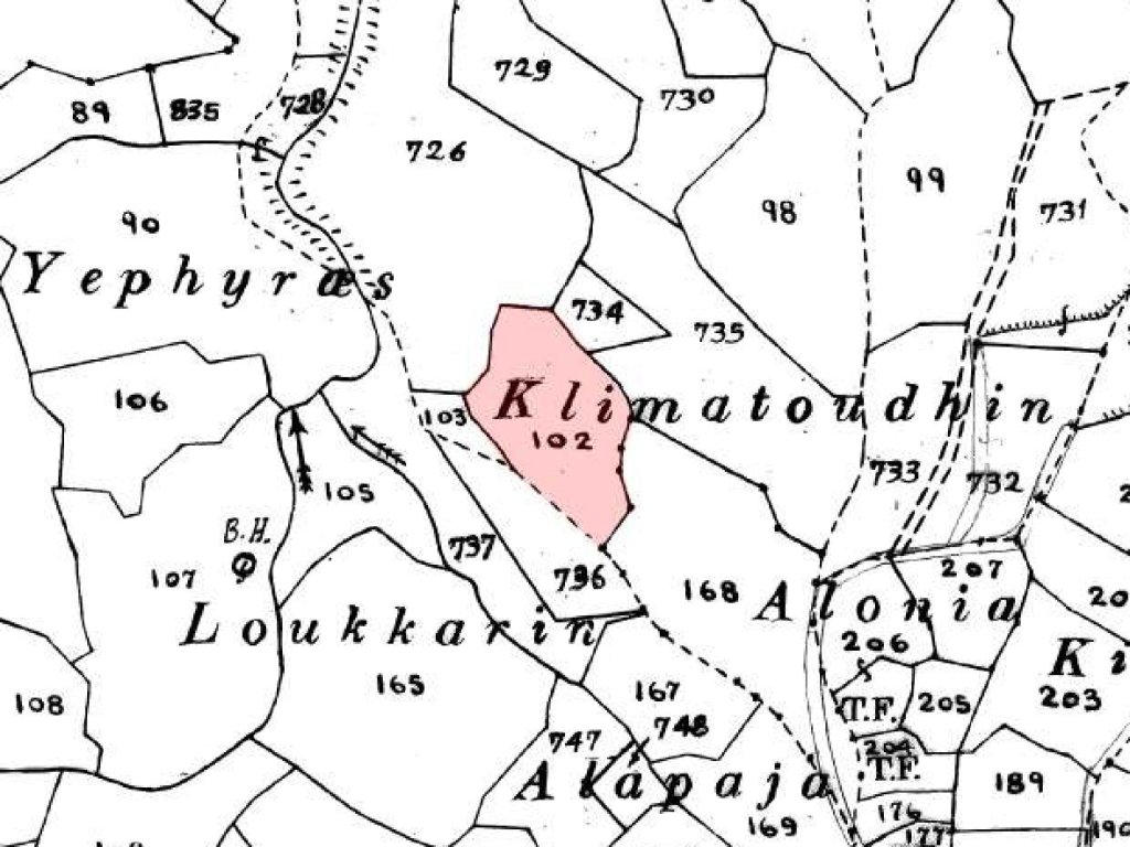 Agricultural field in Stroumpi Community in Paphos District. The property is located about 1.5 kilometers northwest from the center of the community and about 440 meters east of the main road connecting the villages of Stroumpi and Giolou.It is located in an area with beautiful natural surroundings and all the necessary services are very close by.It has an irregular shape with a slightly sloping surface. The property is landlocked, however it is situated only 150 meters away from the closest public registered road.The ground of the field is fertile and can be cultivated.