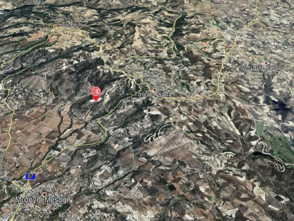 Residential field inTsada community, in Paphos District. It is situated at a distance ofapproximately 1 km southwest from the community's centerand approximately 200 meters east from the connection road Tsada - Koili.The immediate area of the property mainly consists of emptyfields and a small number of detached houses.The fieldhas an irregular shape, a sloping surface and is landlocked. However, the property isaccessible viaa non-registered road(dirt road). It is also located at a distance of approximately 200 m from the nearestregistered road.It is noted that the community of Tsada is only 15 minutes from Pafos town and the motorway.The communityof Tsada is known for its history, tradition and hospitality.