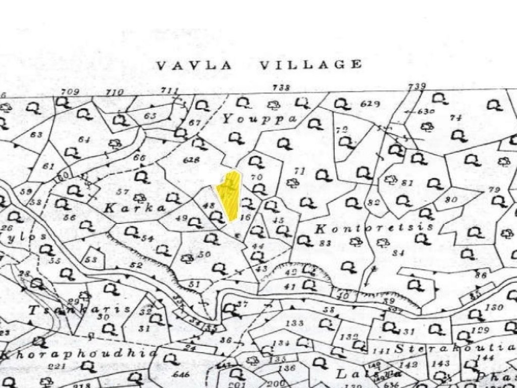 Field within the livestock Zonein Vavla village in Larnaca district. It is situated at a distance approximately 750m northeast of the centre of the village.It has an irregular shape with uneven land surface, and it is landlocked.It falls within the livestock Zone Δ1 where the construction of premises for mass breeding of animals and birds (except pigs) is allowed with a maximum building densityof 50%.
