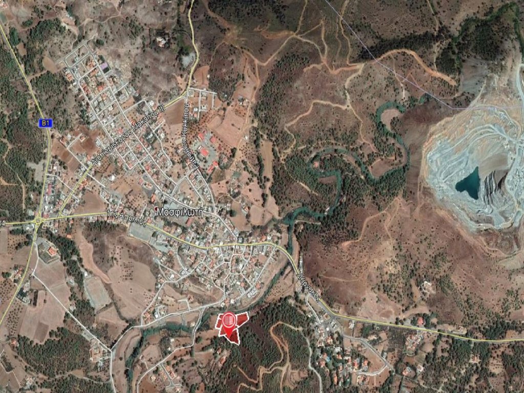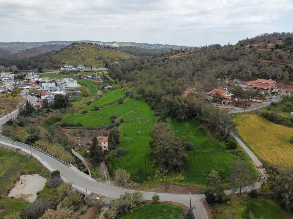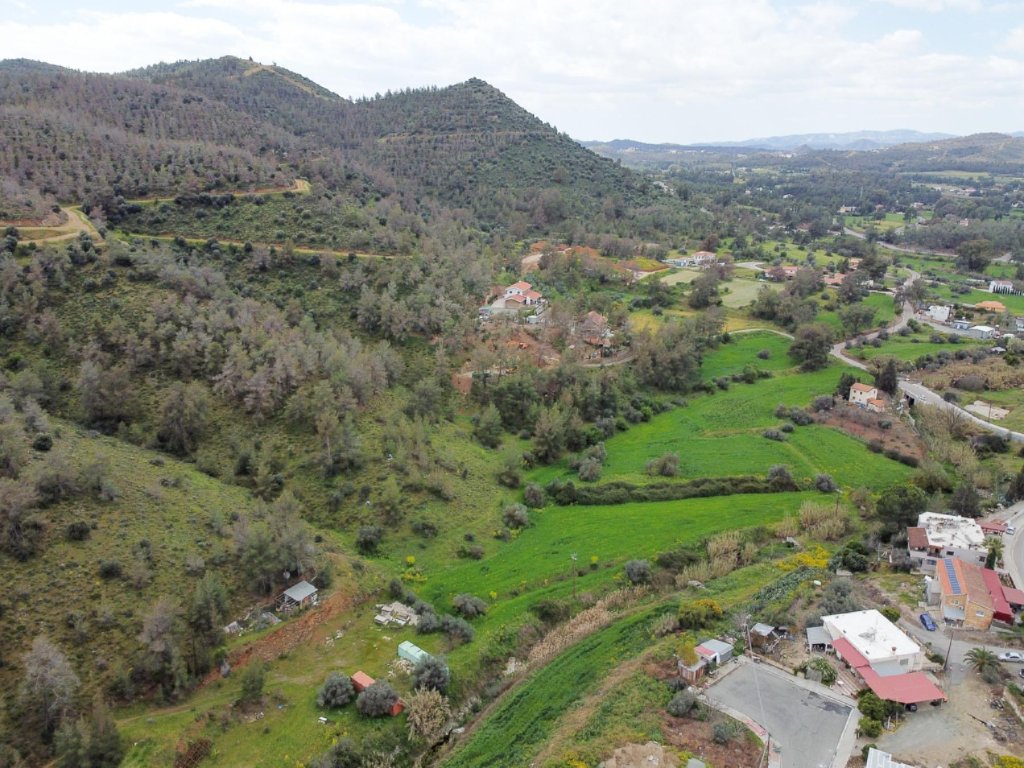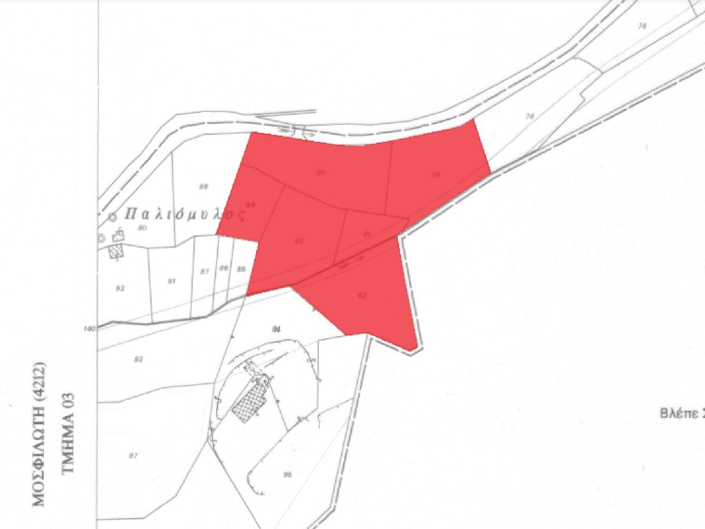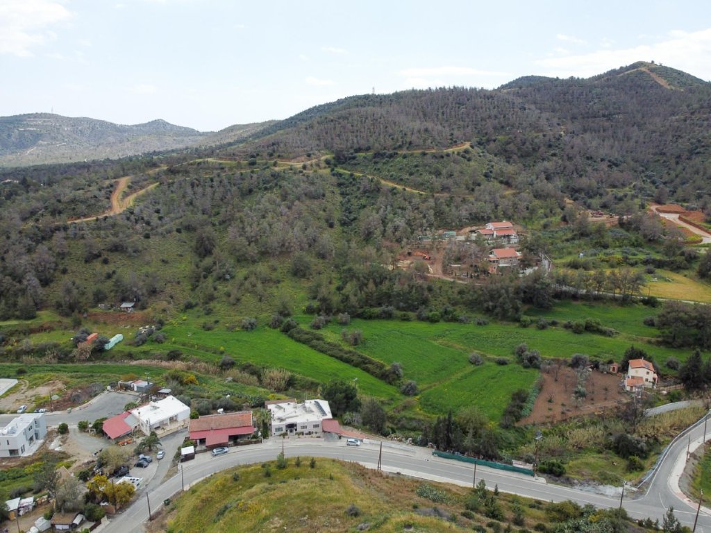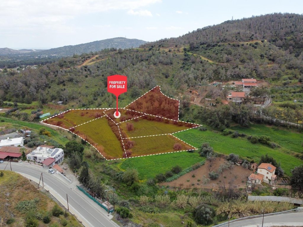 The properties for sale are six adjacent fields with total extend of 10,939 m2.The fields lies within the administrative boundaries of Mosfiloti village, in Larnaca District, at a distance of approximate 30km south of Nicosia and 25 km northwest of Larnaca city.The properties located in a forest area approximate 150m south of the village center, in the locality known as ''Paliomylos'' and has very good accessibility via the Nicosia - Limassol motorway. The field has irregular shape and slightly sloping surface form south to north.Note that the properties has right of access and crossed by a proposed road.
