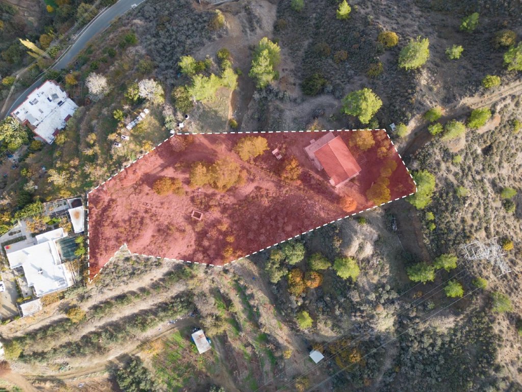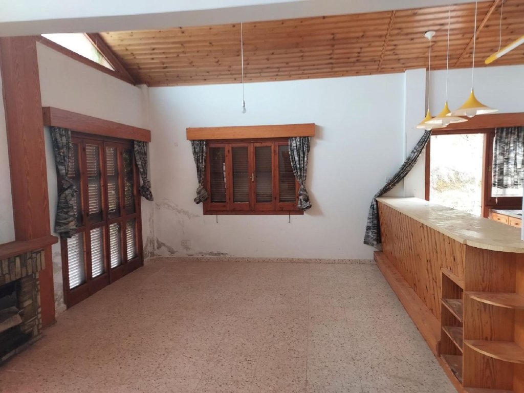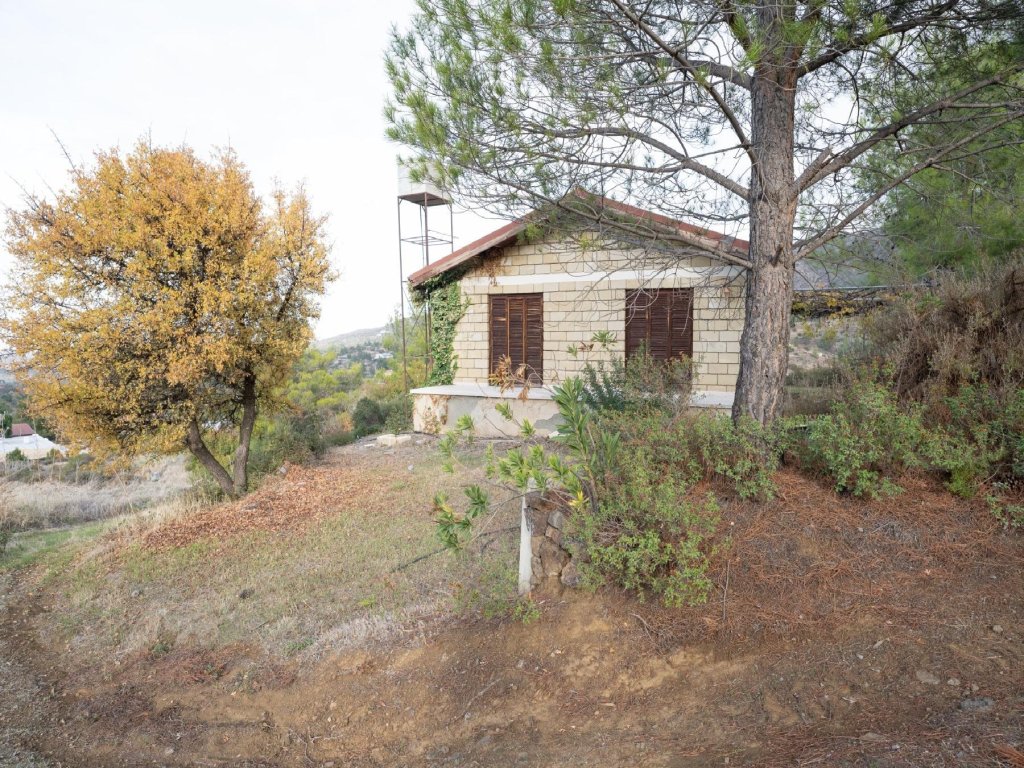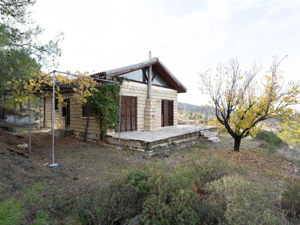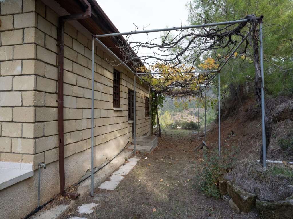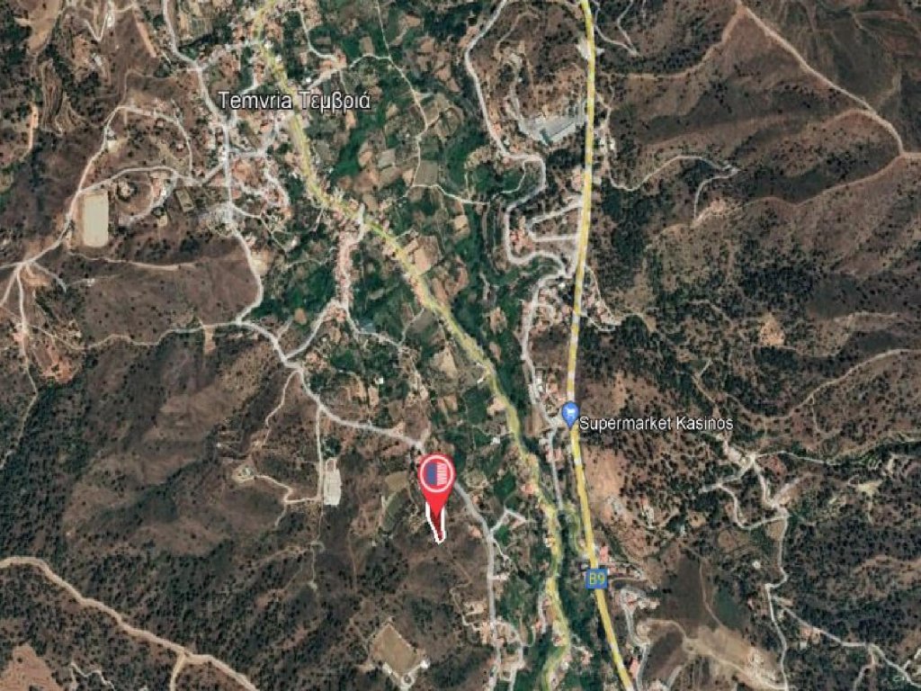 Ground floor house in a quiet location of Temvria community, in Nicosia District. It is situated at a distance of approximately 1km southeast from the community’s centre and approximately 400 meters west of the connecting road Evrichou - Kakopetria.The property has an irregular shape with a sloping surface and is accessible through a right of way (based on the title deed) and Is located 50m approximately southwest from the nearest registered road. The house was constructed around 1990 and its level of construction and maintenance is average.The house is located at the southwestern part of the field and consists of an open plan space of living/ dining room and kitchen, a main bathroom with WC, two bedrooms and verandas. The area of the internal spaces is 80 sqm (approx.), and the uncovered verandas 34sqm (approx.).