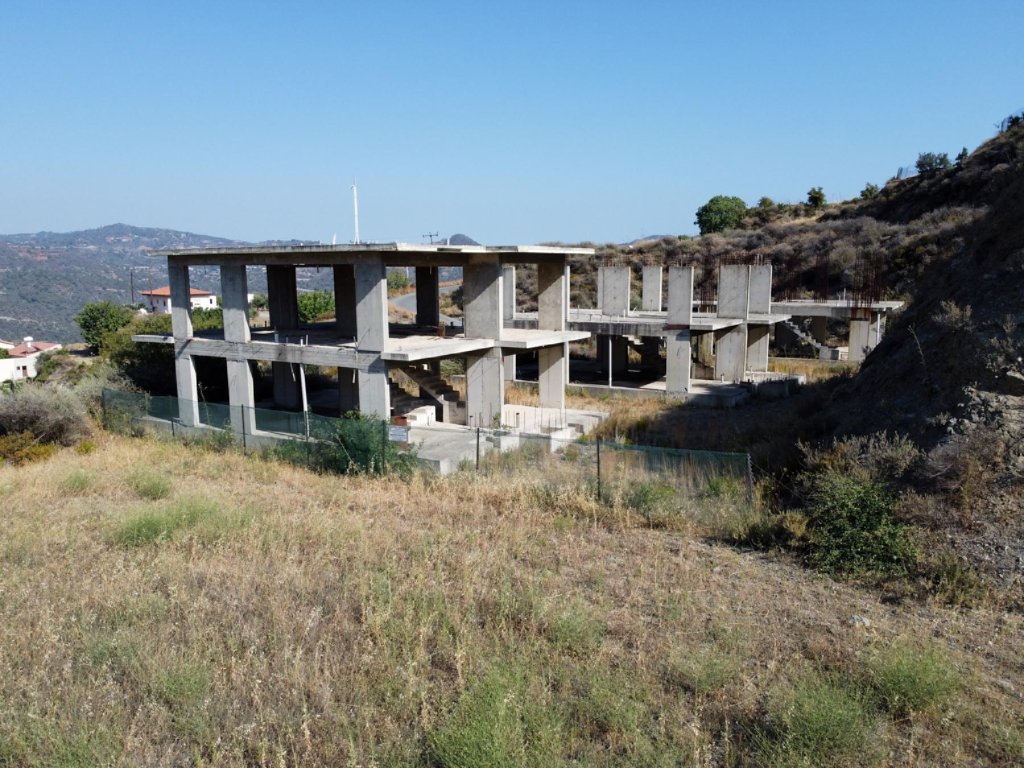 Incomplete development in Dieronacommunity in Limassol District. The development is located just 300 meters approximately southwest from the center of Dierona community and approximately 70 meters northeast of the main road Limassol -Dierona.Within the parcel, there are 5 incomplete houses (twosemi-detached houses and onedetached house), and the share for sale corresponds to the twosemi-detached houses that are built within the northern part of the property.The houses were constructed within a field with an irregular shape and sloping surface. The field abuts onto a registered road along its eastern boundary with 65 meters approximately frontage.It is noted that the houses correspond to 1843/2008 share, where only the reinforced-concrete structure is completed.There is no distribution agreement in place.