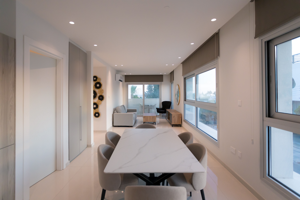 This 2-bedroom duplex is housed in a small new-build block of only four 2-bedroom units in Germasogeia, one of the most desirable locations in Limassol. The quiet residential neighbourhood is only 2km from the nearest organized sandy beach. All everyday amenities from banks and supermarkets to shops and restaurants are less than 1km from the property. In addition, easy access to the highway makes it an ideal base for commuters or regular travelers, as it is midway between the two airports in Larnaca and Pafos, both around 50km away.