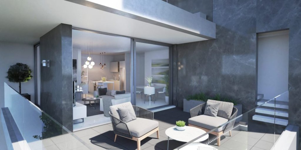 The project is located in the Strovolos area (Nicosia), just a 2-minute walk from the Falcion Private School, 1.2 km from the city's largest shopping center and 300 meters from the old Stavrou Shopping Street. 500 meters to the high-speed entrance to the highway. 14 apartments with two bedrooms. Eight of them have attached gardens. Each apartment comes with a covered parking space and a storage room. The ceiling height is 2.9 m.