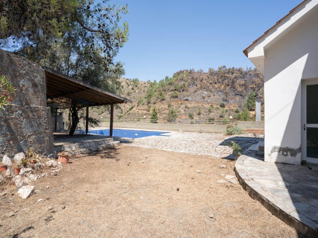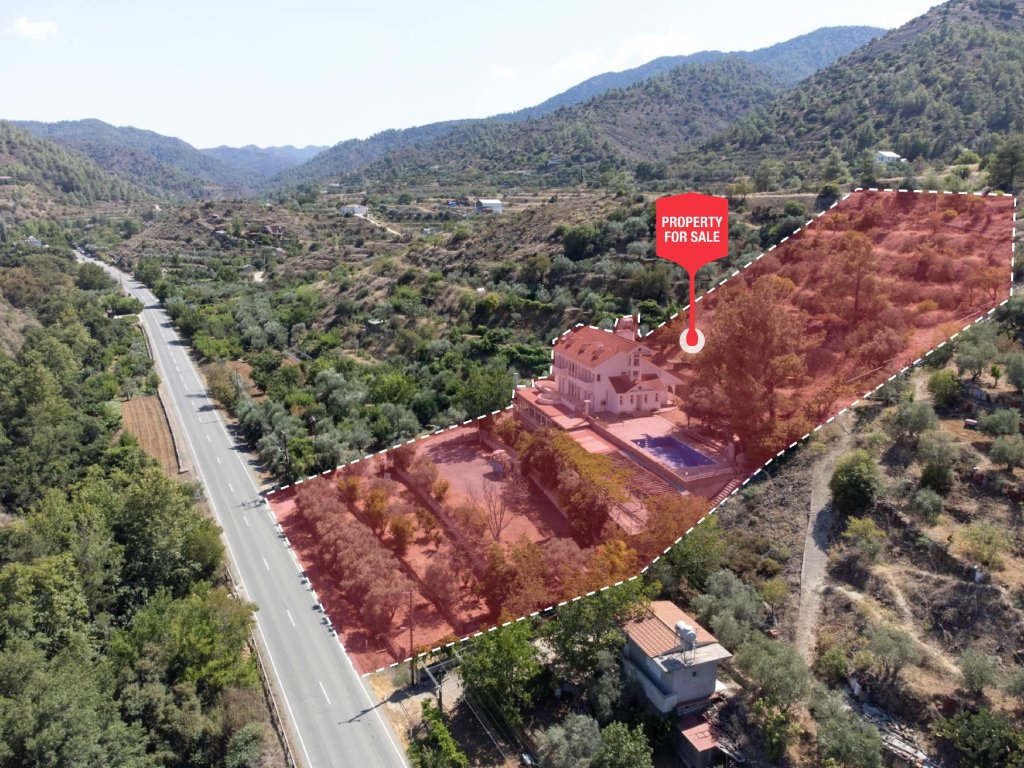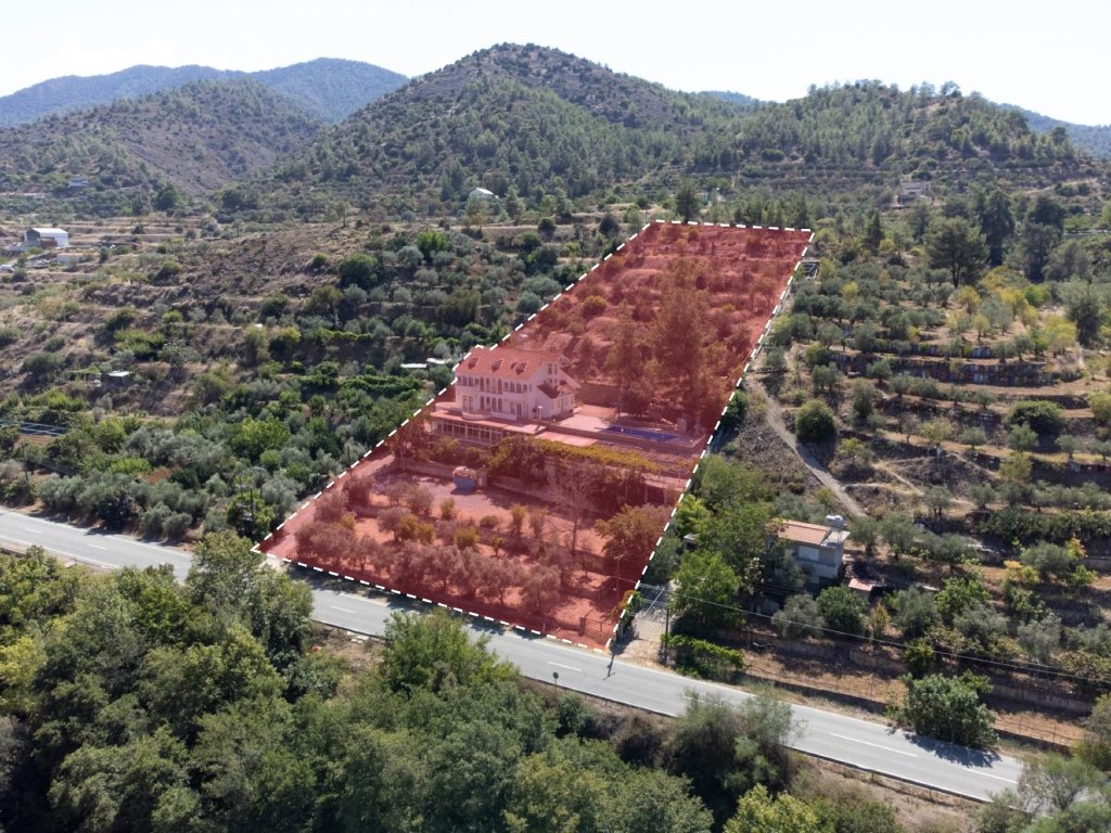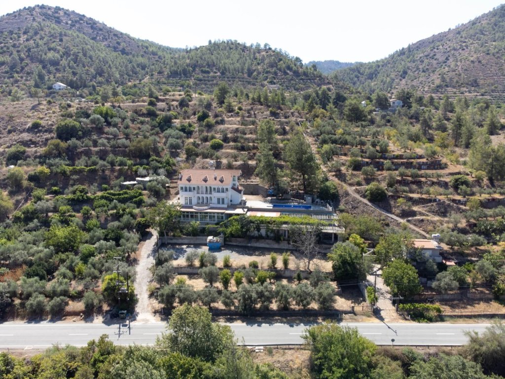 Two-storey house with swimming pool as well as a restaurant in Palaichori Oreini village in Nicosia District. It is located at a distance of 6 km northeast of the centre of the village and it abuts on Nicosia-Palaichori main road on its eastern boundary with a frontage of 55 m.The vicinity of the property is characterized by a beautiful natural environment with pine trees and sporadic residential development. The house was builtaround 1990 and it consists of 4 bedrooms and its level of construction and maintenance is satisfactory. The restaurant was builtaround 1993 and its level of construction and maintenance is satisfactory.The area of the house is 380 sqm, the restaurant is 120 sqm, the supplementary building is 30 sqm and the uncovered veranda is 180 sqm. Plot land area is 5,844 sq.m.It needs to be noted that for the buildings a Certificate of Final Approval has been issued.It is suitable for private use or for rental purposes.