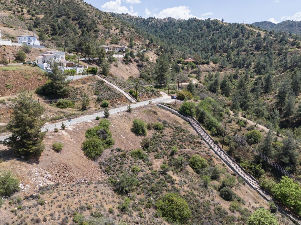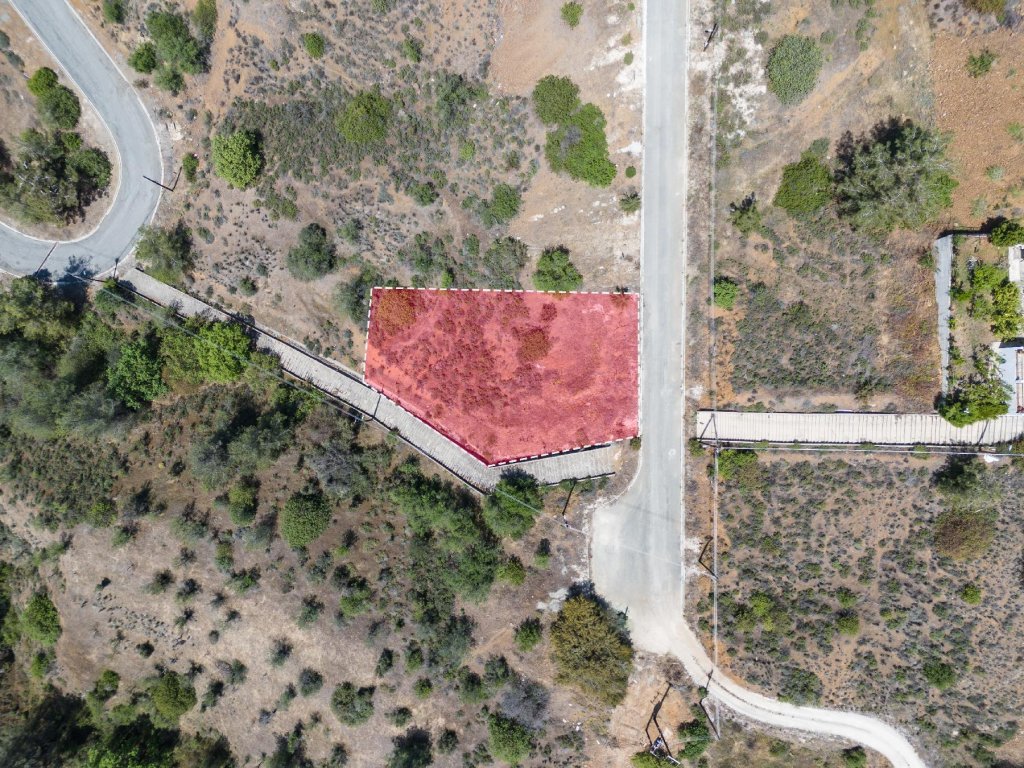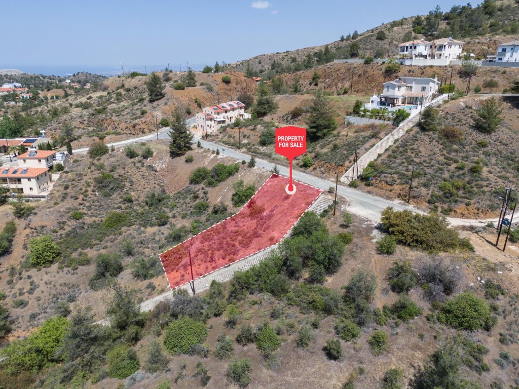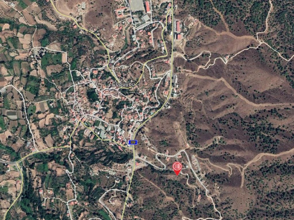 Corner plot in a quiet and purely residential area in Evrychou village in the District of Nicosia.It is situated at a distance of approximately 660 meters southeast from the village centre.It has a trapezium shape and a sloping surface.It abuts a registered road along its southern boundary with a total frontage of about 38m.The property falls within an agricultural zone, however, according to the provisions of the Planning Authorities, it can be utilizedfor a residential development with maximum building density 60%, coverage 35%, in 2 floors.