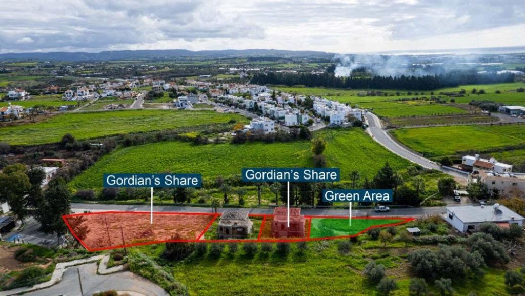 The property is a shared (80%) residential field in Timi, within which there are two incomplete detached houses.